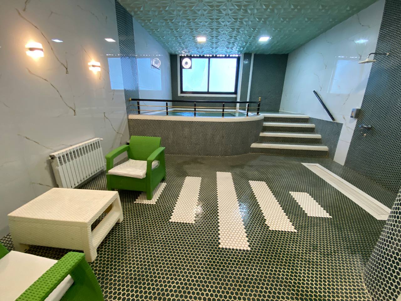 این استخر خصوصی، علاوه بر آبگرم طبیعی، امکانات تفریحی متنوعی مانند سونای خشک و بخار، جکوزی و فضای استراحت با مبلمان راحت را نیز ارائه میدهد.